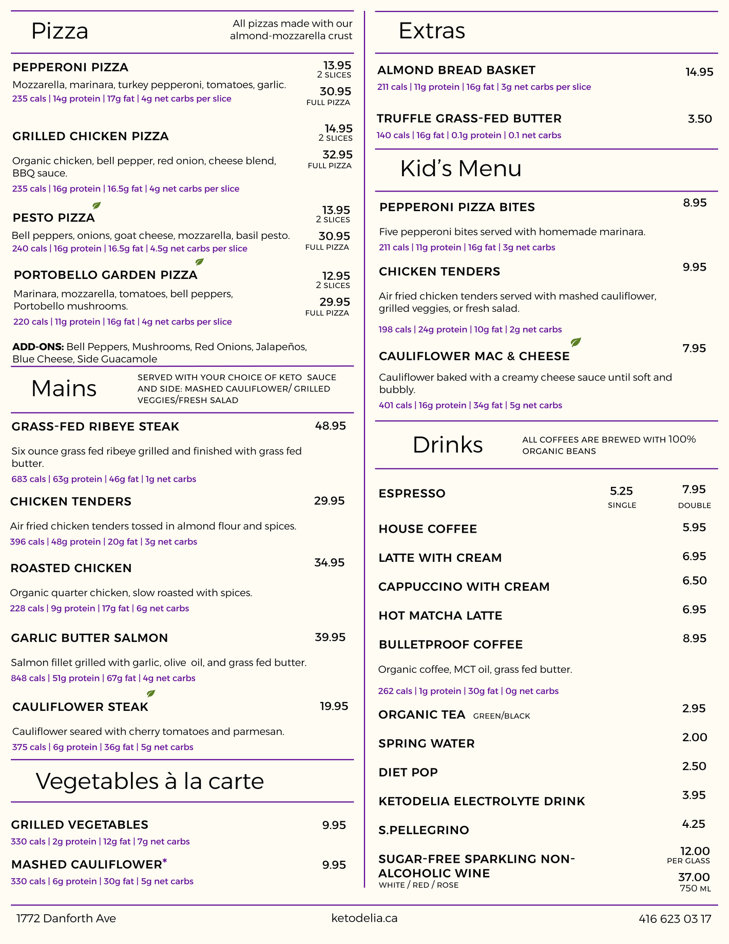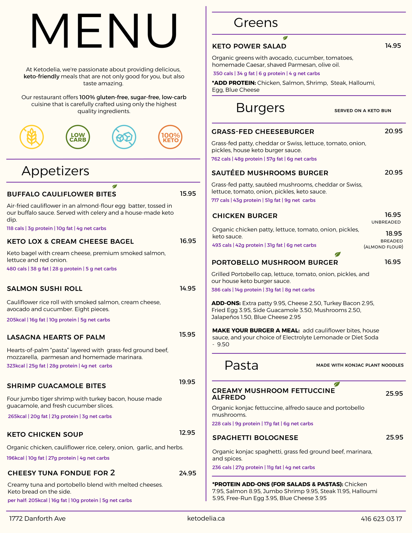 100% keto, gluten free and sugar free restaurant and bakery in Toronto.