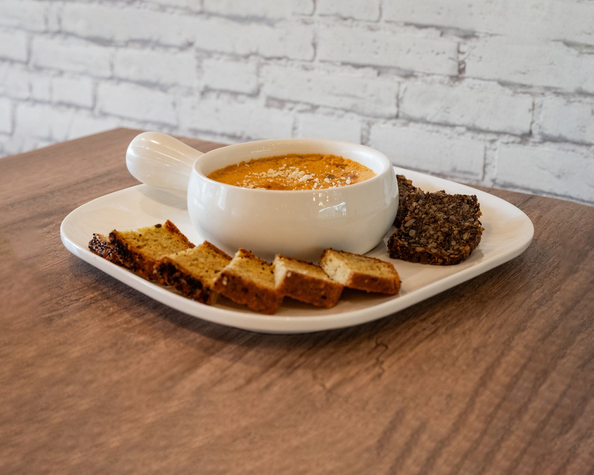 Rich, cheesy blend of tuna, portobello mushrooms, cream cheese, mozzarella, peppers, onion, and garlic. Served with our keto bread.